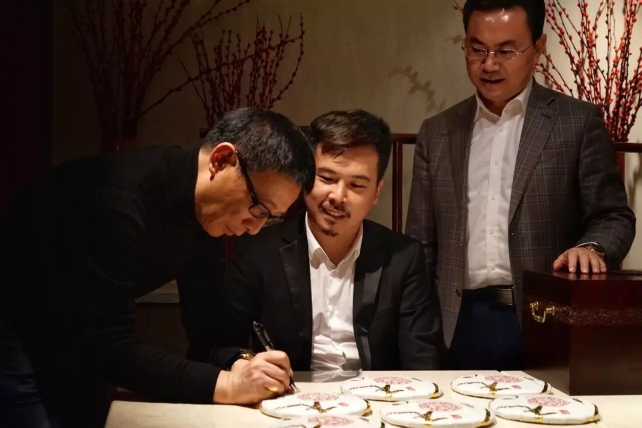 王文超先生攜小組成員向劉教授簽字贈茶,紀念這一特殊的時刻。