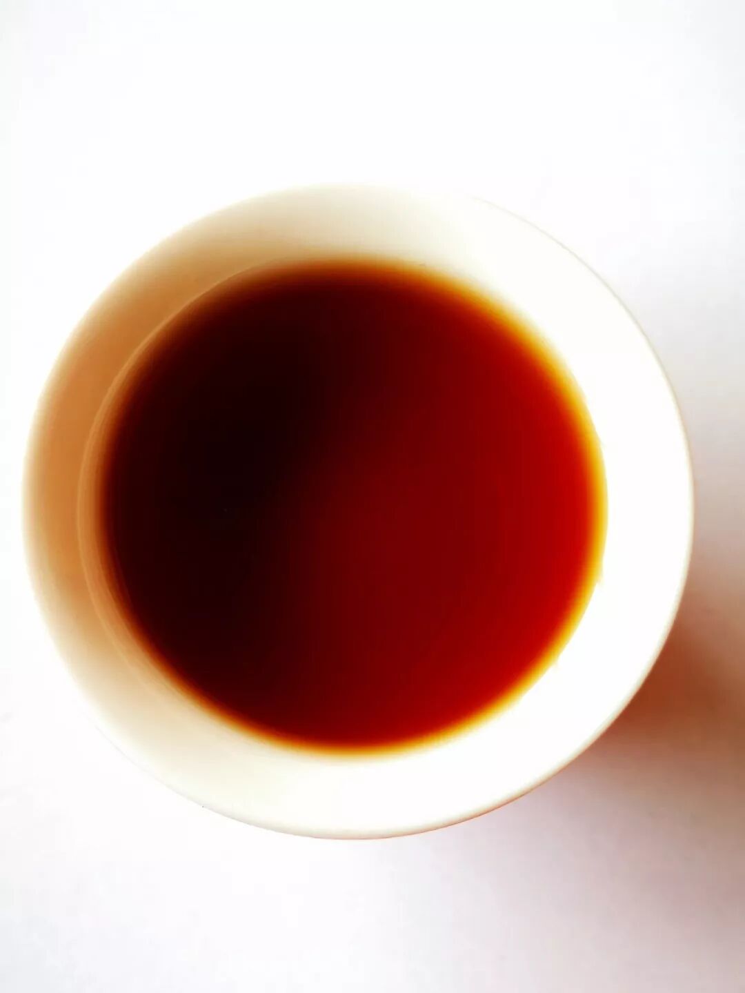 干茶色澤:餅面勻整,壓制松緊程度適中。干茶色澤紅褐有光澤,光潤(rùn)勻整,金毫顯露,凈度好。