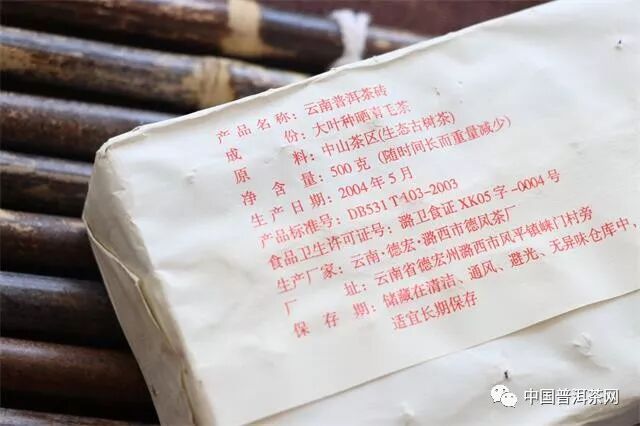 2004年的春天,在這片生態(tài)古樹茶園中,茶農(nóng)們?nèi)∽吡藸I養(yǎng)物質(zhì)豐富的鮮葉,通過德鳳茶廠傳統(tǒng)的制茶工藝,最后壓制成了500克的普洱生茶磚。據(jù)德鳳茶業(yè)廠長盧鳳美所述:現(xiàn)在的德鳳茶業(yè)就是以前的芒市華僑茶廠,德鳳茶業(yè)歷史久遠,制茶工藝成熟。因此保證了成品茶的獨特品質(zhì)。