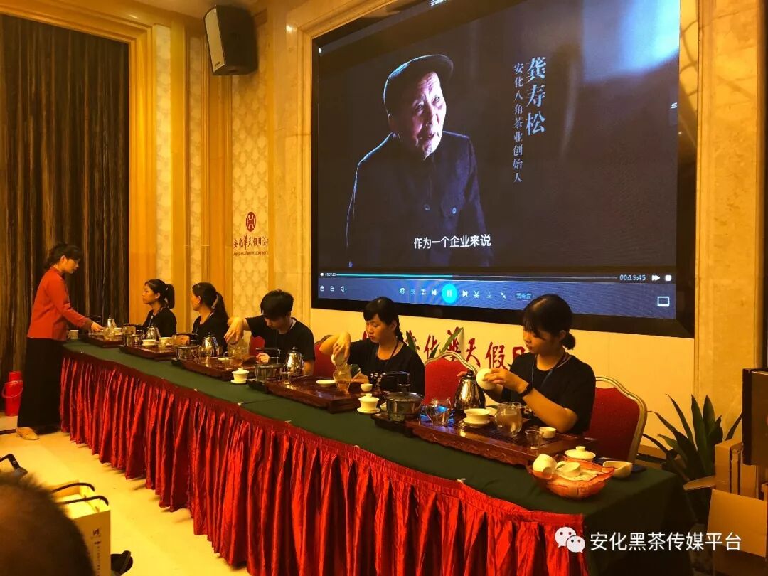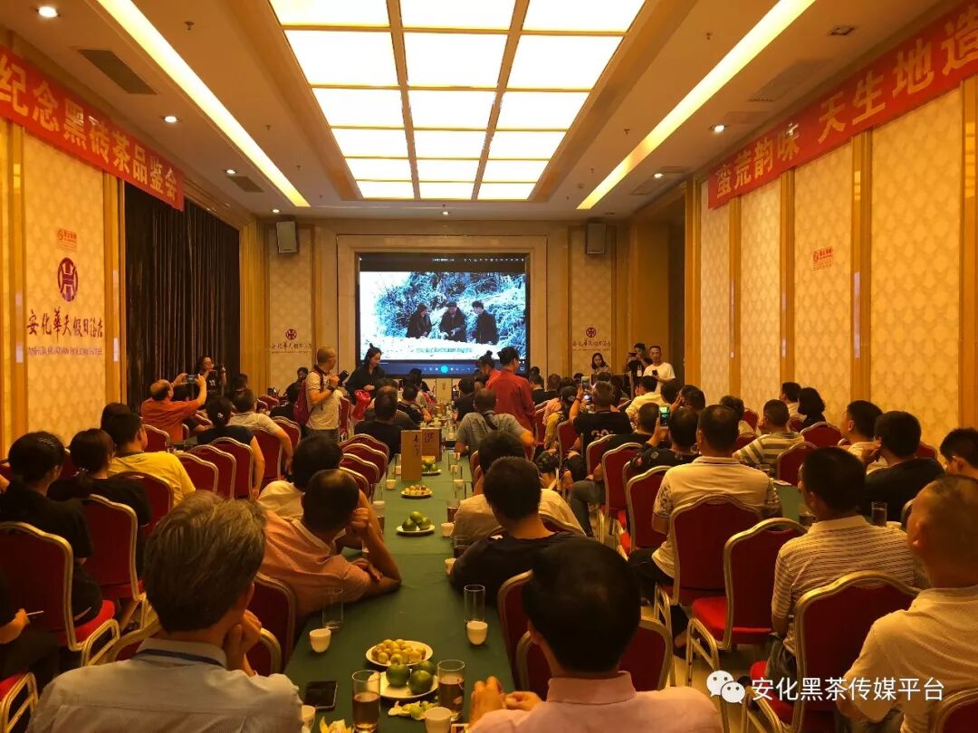慶典儀式前一天,八角茶業(yè)在安化華天假日酒店舉行了“云臺大葉‘拓荒’紀念黑磚茶品鑒會”,現(xiàn)場“大咖”云集,氣氛熱烈。