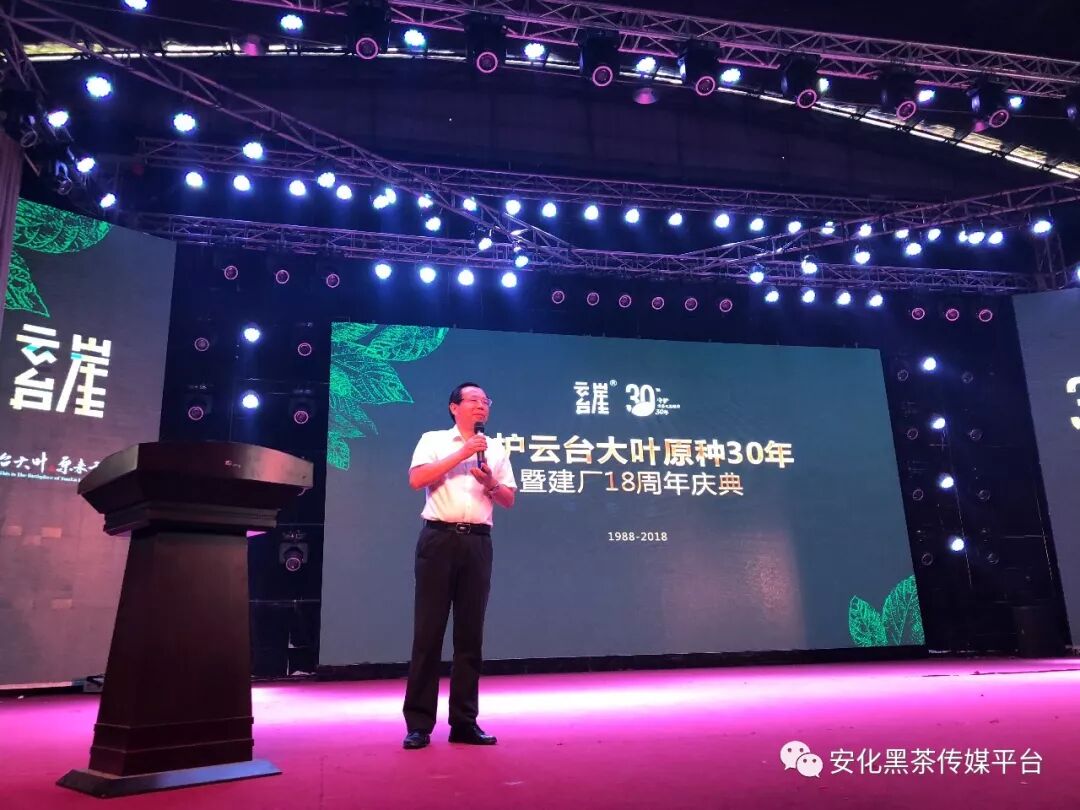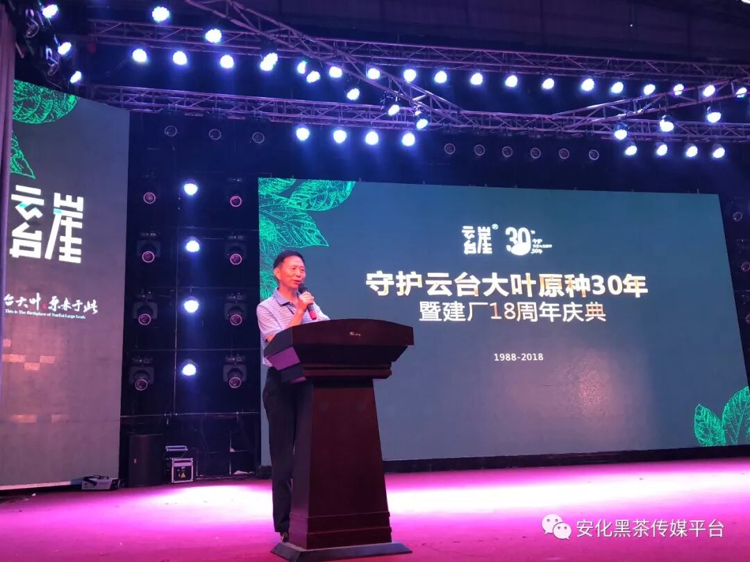 9月15日,安化云臺山八角茶業(yè)有限公司在安化馬路鎮(zhèn)大劇院隆重舉行“守護云臺大葉原種30年暨建廠18周年慶典”。