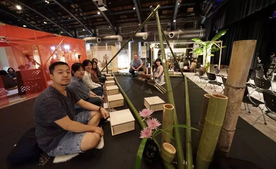 揚(yáng)津茶業(yè)以廢棄的門(mén)板作為茶桌搭配布幔與竹器等營(yíng)造空寂的意境。
