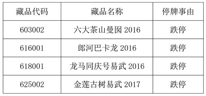 關(guān)于《六大茶山曼囡2016》等藏品停牌公告