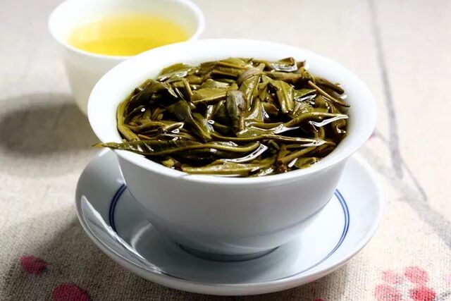 革登古茶山的茶樹(shù)都屬野生過(guò)渡型的大中小葉種混生。因革登所產(chǎn)的茶葉芽頭粗壯,滿(mǎn)枝銀茸。民間稱(chēng)革登“大白茶”。