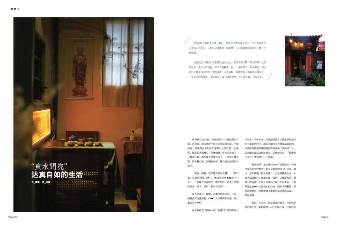 環(huán)繞天井,便都是古厝房間改造后的茶室,布置極為雅致而不做作,古早的竹椅長條“沙發(fā)”,眠床也拿來做榻榻米二人茶席。每間茶室的茶具都不同,掛畫、裱字、陶瓶、古琴,散布期間,有些房間還備有炭火茶爐,點(diǎn)火扇風(fēng),取暖煮茶,怡然自得。
