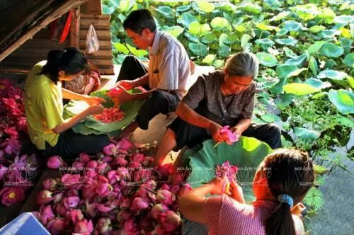 越南傳統(tǒng)的紅茶制作方法是摘取茶芽發(fā)酵數(shù)日后,揉捻后放入容器里保存,時間可長可短,有的可能是數(shù)年后才取出來蒸制,蒸后風(fēng)干。越南還有一種特殊工藝的紅茶——蓮漫茶,它的制作方法是將做好的紅茶再進行一次加工,窨以蓮花,優(yōu)質(zhì)的蓮漫茶要經(jīng)過五六次窨制,具有濃郁的越南特色。