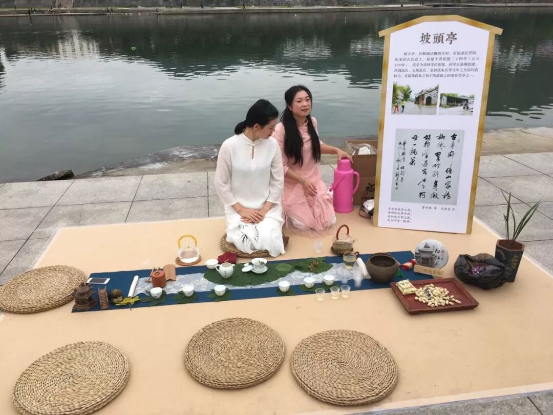 ? ? ???今天在桐山溪畔擺設(shè)了64個茶席,這64座茶亭是從現(xiàn)存的100多座茶亭中,挑選出來具有代表性的一部分。每個茶席旁邊都有一個展板,依次對應(yīng)的64座茶亭進行介紹。不僅如此,本次茶會的64個茶席,全部都來自熱心的茶友,可以很直觀的感受到,看到每一個茶席都是經(jīng)過精心的布置,各有千秋,共同在這美麗的桐山溪畔呈現(xiàn)出一幅幅美麗而又壯闊的畫面。